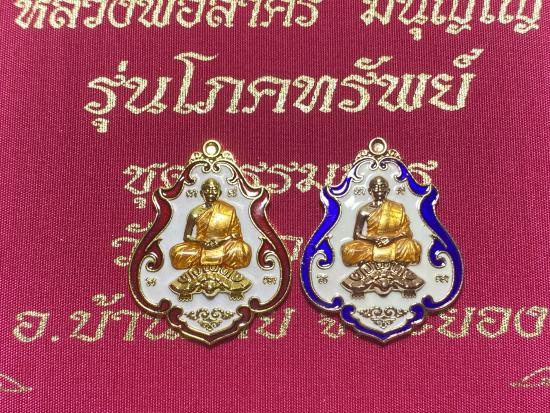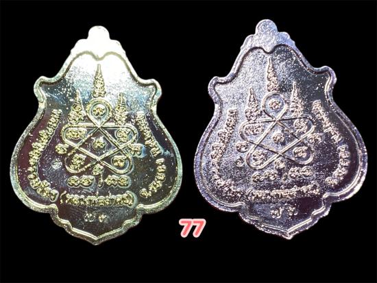แยกชุดกรรม เลข๗๗ ผู้ชนะรับพระ 2 องค์ เหรียญโภคทรัพย์ ลพ สาคร ปี 2552 เนื้อกะไหล่ทอง ลงยาแดง+กะไหล่นาค ลงยาน้ำเงิน หายากมากเพราะสร้างไว้ในเฉพาะในชุดกรรมการที่มีเพียง 300 เท่านั้น เลข 77 มีเพียง 1 เดียว |