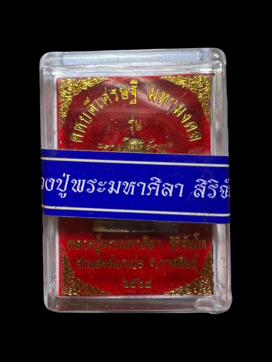รูปหล่อหลวงปู่ศิลา รุ่นรวยโกฏิล้าน เนื้อทองฝาบาตร เลขโค็ต757 กล่องเดิม |