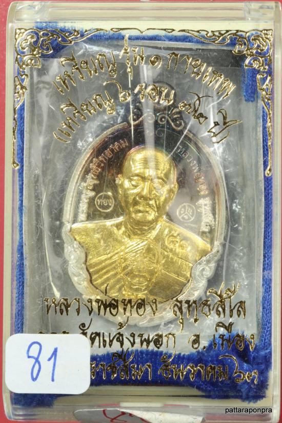 เหรียญหลวงพ่อสายทอง รุ่น๑กายเทพ ปี 2563 เนื้อเงินหน้ากากทองคำแท้ หมายเลข 81