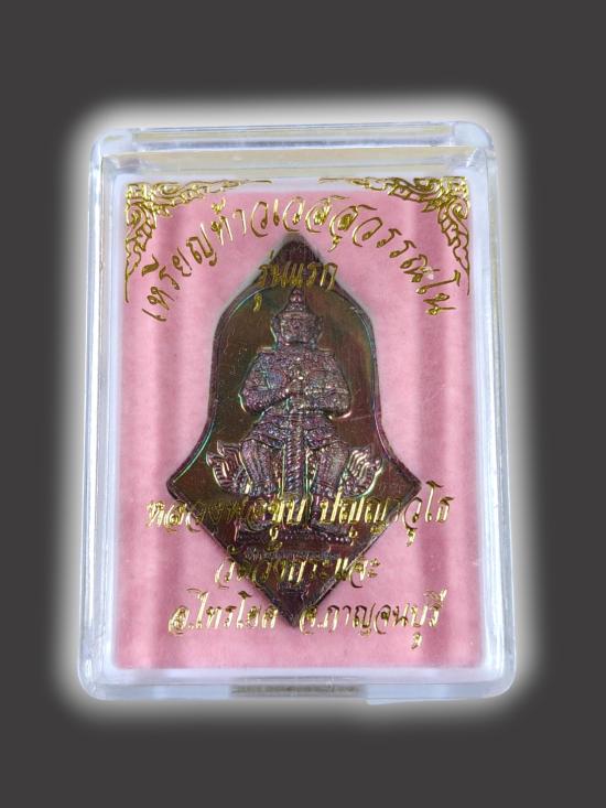 A3433.ท้าวเวสสุวรรณ รุ่นแรก หลวงพ่อชุบ วัดวังกระแจะ กาญจนบุรี เนื้อทองแดงผิวรุ้ง ปี 63 ตอก 2โค๊ต หมายเลข 4091 กล่องเดิม |