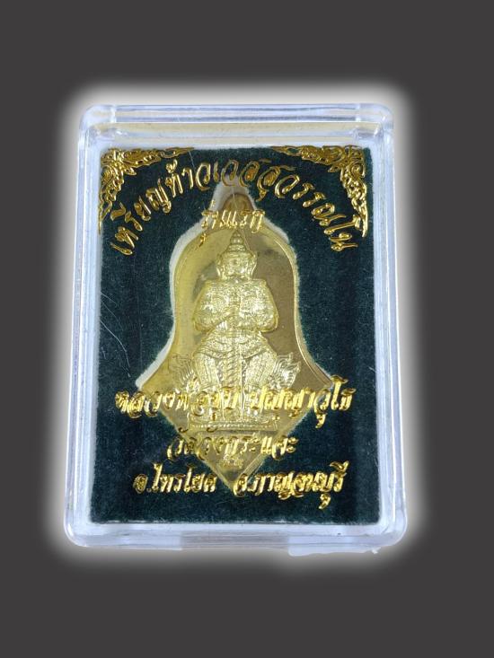 A3436.ท้าวเวสสุวรรณ รุ่นแรก หลวงพ่อชุบ วัดวังกระแจะ กาญจนบุรี เนื้อทองทิพย์ ปี 63 ตอก 2โค๊ต หมายเลข 7972 กล่องเดิม |