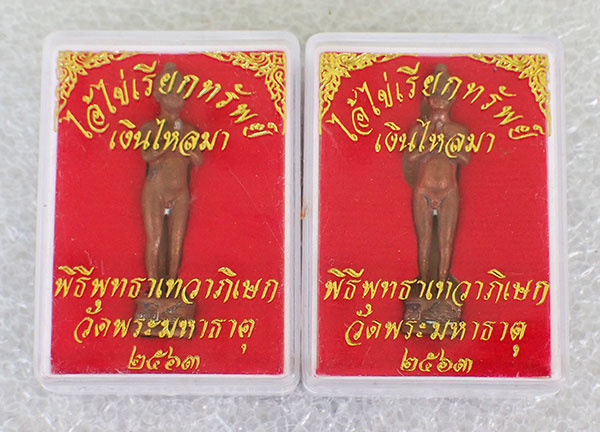 $วัดใจทีเดียว 2 องค์ค่ะ รูปหล่อไอ้ไข่ (ขาห่าง) รุ่น เรียกทรัพย์เงินไหลมา พิธีพุทธาเทวาภิเษก ณ วัดพระมหาธาตุ จ.นครศรีธรรมราช ปี 2563 ขนาด 3.5 ซม. เนื้อทองแดง โค้ตกรรมการ เลข ๒๗๕ + ๘๒ พร้อมกล่องเดิมค่ะ$ |