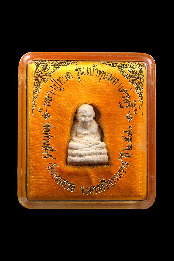 วัดใจ หลวงปู่ทวด เนื้อผงน้ำนมควายฝังตะกรุด รุ่นเบ้าทุบมหาเศรษฐี พ่อท่านสังข์ วัดดอนตรอ นครฯ ปี 40 สวยเดิม ๆกล่องเดิมครบ |