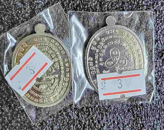 เคาะเดียวแดง เหรียญหลวงพ่อพัฒน์ รุ่นเจริญพร 2 เนื้ออัลปาก้าหน้ากากเงิน รวม 2 เหรียญ |