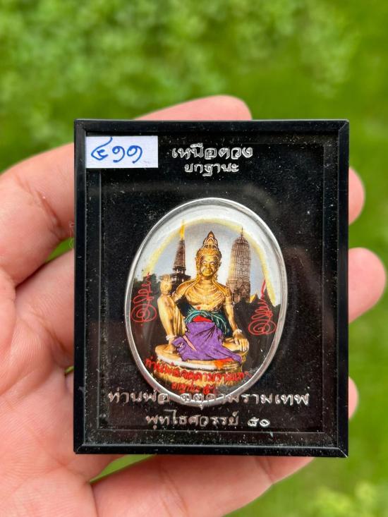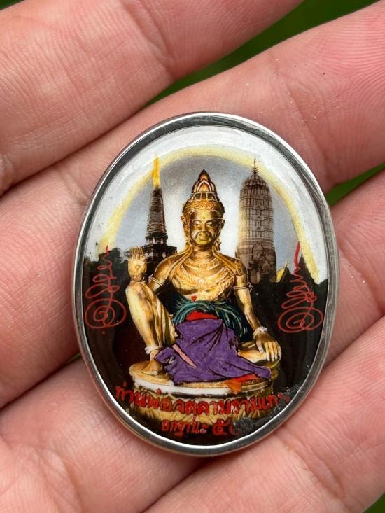 ล็อกเก็ต รุ่นนายพลเหนือดวง ไร้พ่ายแพ้ไม่เป็น พิมพ์รูปไข่ เลี่ยมจับขอบเงิน หลังอุดผงพรายกุมาร ฝังปรกทองแดง โรยผงตะไบ สภาพเดิมๆ มีกล่องครบครับ No.411 หายากสร้างน้อย |