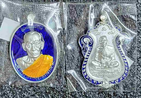เคาะเดียวแดง เหรียญหลวงพ่อพัฒน์ รุ่นเลื่อนสมณศักดิ์ เนื้อกะไหล่เงินลงยาน้ำ เนื้อกะไหล่เงินลงยาน้ำเงิน รวม 2 เหรียญ |