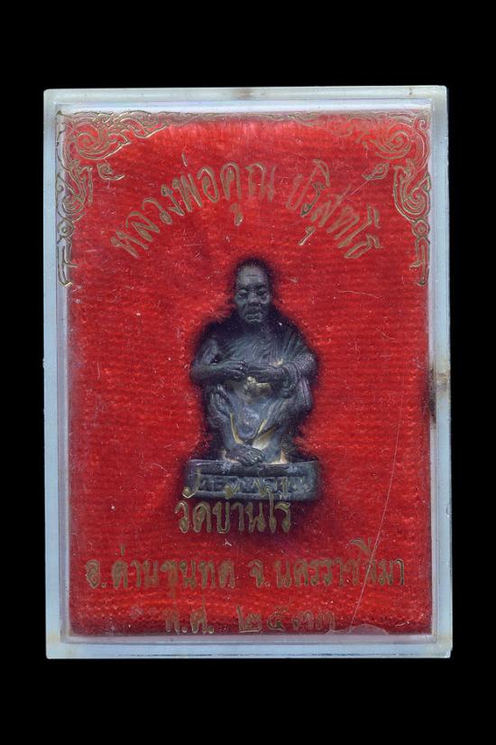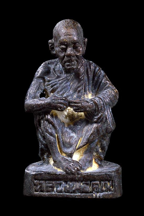 รูปหล่อนั่งบริกรรมคาถาชักประคำ ( เนื้อโลหะผสม ) พ.ศ.2533 ( กล่องเดิม )