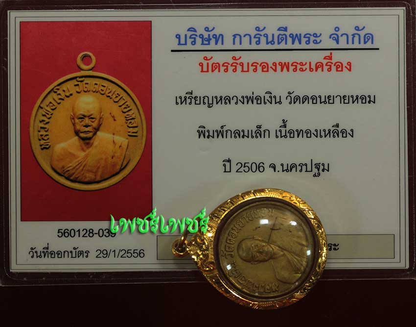 เหรีย หลวงพ่อเงิน วัดดอนยายหอม พิมพ์กลมเล็ก เนื้อทองเหลือง ปี2506 จ.นครปฐม เลี่ยมทองยกซุ้มประมาณ65-70% พร้อมบัตรรับรองพระแท้จากการันตีพระสบายใจได้พระแท้แน่นอน ค่ะ |