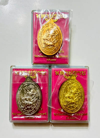 วัดใจ เหรียญมหาปราบ1 หลวงปู่บุญ ธมมธีโร วัดบ้านหมากมี่ จ.อุบลราชธานี ชุดกรรมการลงยา 3 เหรียญ |