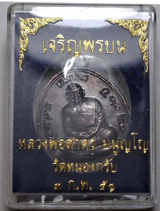 เหรียญเจริญพรบน เนื้อทองแดงรมดำ ปี 2551 หลวงพ่อสาคร วัดหนองกรับ สวยเดิม จมูกโด่ง พร้อมกล่องเดิม หมายเลข 6178 เจ้าของซีลผิวรักษาไว้อย่างดี ถ่ายรูปผ่านซีลค่ะ สวยตามภาพ ไม่ผิดหวัง |