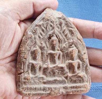 ชื่อพระเครื่อง พระตรีกาย พระสาม กรุลพบุรี เนื้อดินหักครึ่งเก่าตามสภาพ ราคาวัดใจ