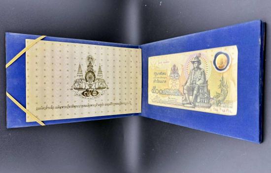 ธนบัตรที่ระลึก 500 บาทแบบพิเศษ พระบาทสมเด็จพระเจ้าอยู่หัวรัชกาลที่ 9 ฉลองสิริราชสมบัติครบ 50 ปี พร้อมปกผ้าไหม