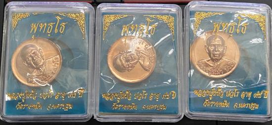 หลวงปู่แผ้ว ปวโร วัดรางหมัน เหรียญรุ่น พุทโธ (เนื้อทองเเดง 3 เหรียญ) |