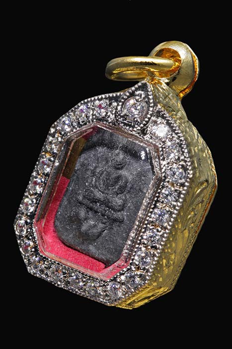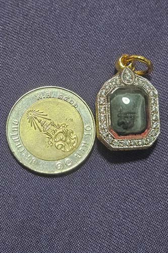 พระหลวงพ่อปาน พิมพ์ไก่จิ๋ว วัดโคกเสือ ปี2505 เนื้อดิน สีดำ สวยเดิม ผงเต็ม เลี่ยมทองไบคอนฟังเพชร ((หรือทองอิตาลี)) |