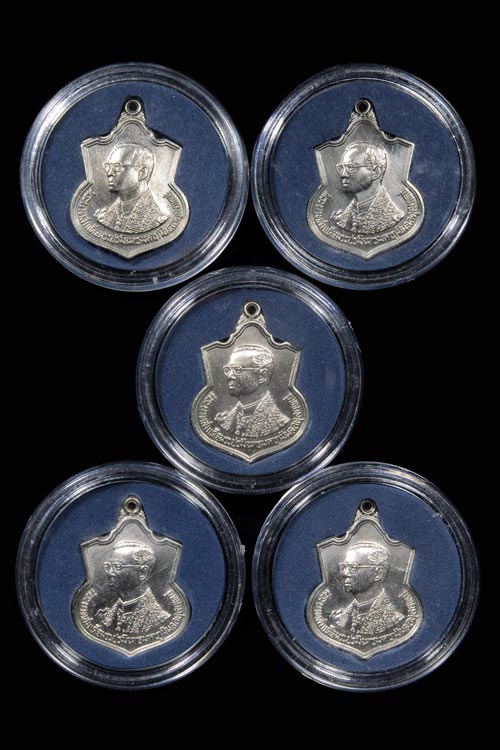 เหรียญที่ระลึก-พิมพ์อาร์ม เนื้ออัลปาก้า ในหลวง ร.9 รุ่น 6 รอบ พระชนมายุ 72 พรรษา ปี 2542 พร้อมตลับกลมบรรจุเดิมๆ จำนวน 5 เหรียญ |