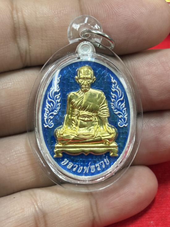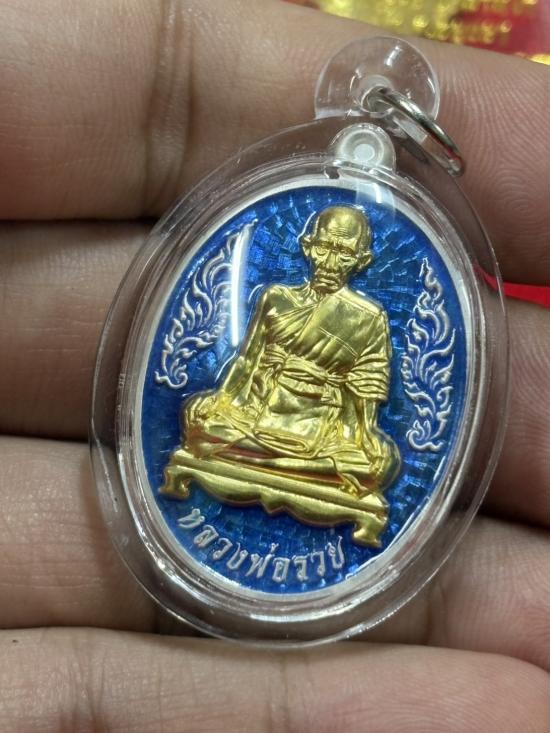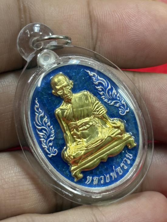 HOT!!! เหรียญบารมีหลวงพ่อรวย ปี 2566 เนื้อเงินลงยาฟ้า หน้าทองคำ ( แถมทองคำ) เลข 175 หลวงพ่อรวย วัดตะโก เคาะเดียวแดง