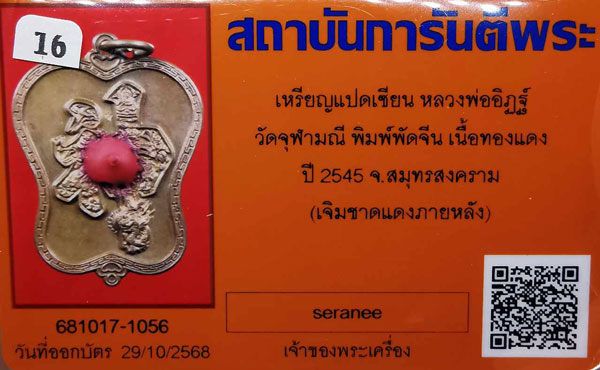 เหรียญแปดเซียน หลวงพ่ออิฏฐ์ วัดจุฬามณี พิมพ์พัดจีน(เจิมชาดแดงภายหลัง) เนื้อทองแดง ห่วงเดิม ปี2545 จ.สมุทรสงคราม + บัตรG-pra สภาพสวยเดิมค่ะ สภาพตามรูปทุกประการค่ะ