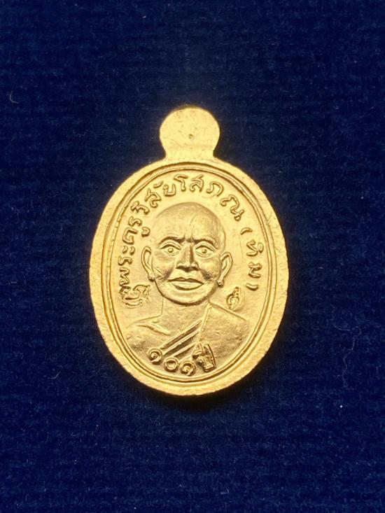เม็ดแตงหลวงปู่ทวด หลังอาจารย์ทิม รุ่น101ปี เนื้อทองแดงนอกชุบทองลงยาดำ |