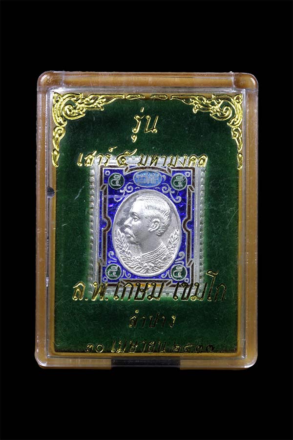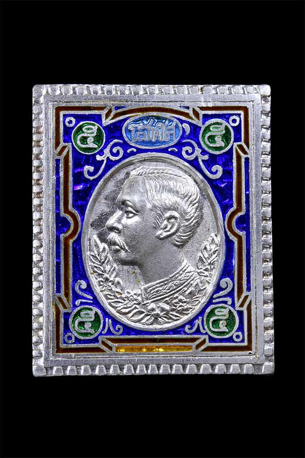 เหรียญแสตมป์ รัชกาลที่ 5 เสาร์ 5 มหามงคล หลวงพ่อเกษม สุสานไตรลักษณ์ลำปาง จ.ลำปาง เนื้อเงินลงยา รับประกันพระแท้สวยเดิม มีกล่องเดิม