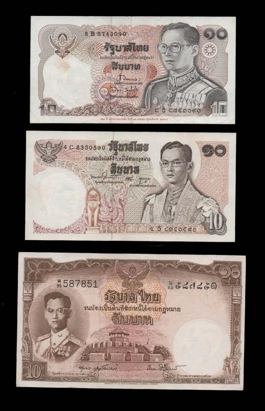วัดใจ เคาะเดียว ธนบัตรในหลวงรัชกาลที่๙ ชนิดราคา 10 บาท รุ่นเก่า จำนวน 3 ใบ จาก 3 รุ่น |