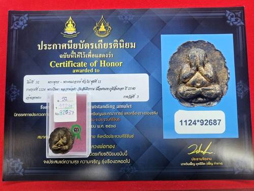 พระปิดตา หลวงพ่อดำ วัดสันติธรรม เนื้อผงมหาภูติลิ้นทอง ปี2540 ติดรางวัลที่3 |