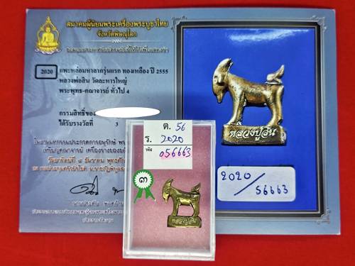 แพะหล่อ รุ่นแรก หลวงพ่อสิน วัดละหารใหญ่ เนื้อทองฝาบาตร ปี2555 ติดรางวัลที่3 |