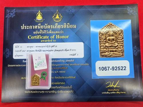 พระขุนแผน หลวงพ่อสาคร วัดหนองกรับ รุ่นไตรมาส51 เนื้อผงฝังพลอย พิมพ์เล็ก ปี2551 ติดรางวัลที่3 งานสมาคมพระเครื่องพระบูชาไทย |