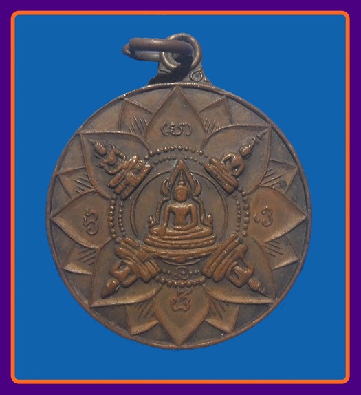 เหรียญ พระปัญจะพุทธามหามงคล ด้านหน้าออกแบบเป็นรูปพระพุทธประจำบ้านเมืองห้าพระองค์ ตรงกลางเป็นพระพุทธชินราช อนุสรณ์ครบรอบ 25 ปี ธนาคารศรีนคร พ.ศ.2518 จัดพิธีพุทธาภิเษกโดยพระคณาจารย์สาย