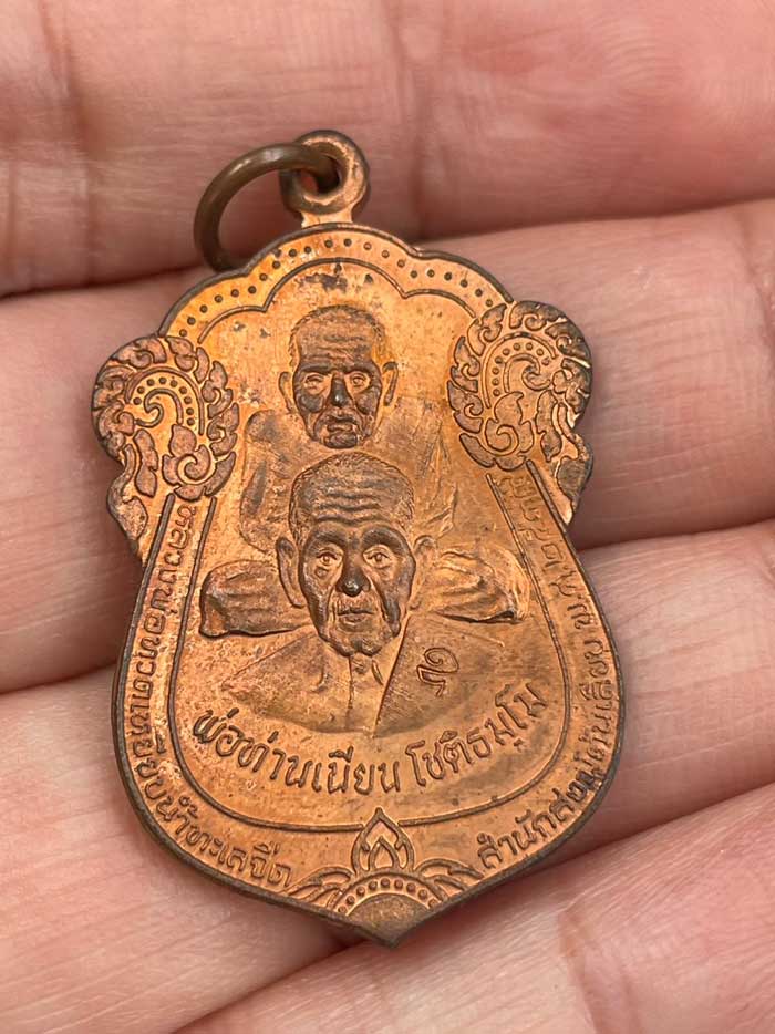 เหรียญพุทธซ้อนหลวงปู่ทวด พ่อท่านเนียน สำนักสงค์ต้นเลียบ รุ่น แรก ปี 2539 เนื้อทองแดงผิวไฟเดิมๆ |