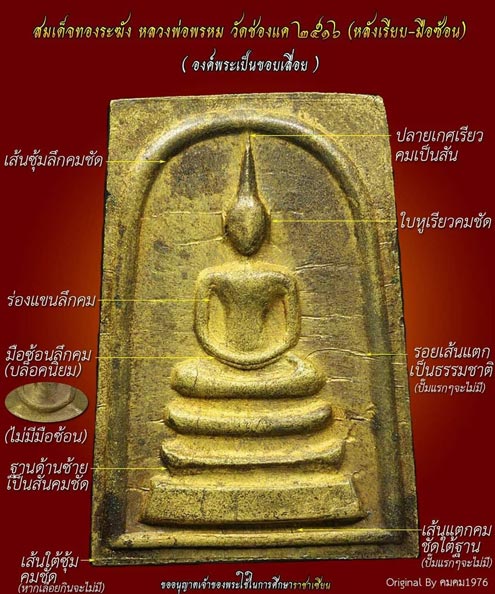 สมเด็จทองระฆัง หลวงพ่อพรหม วัดช่องแค จ.นครสวรรค์ ปี 2516 เนื้อทองระฆัง ยอดนิยม พิมพ์มือซ้อนนิยม สุดหายาก! + บัตรรับรอง GPRA |