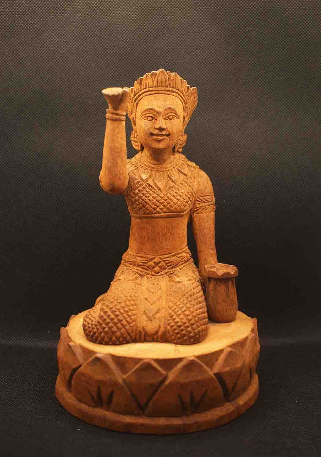 นางกวักแกะ บูชา ขนาด 5 นิ้ว ไม้เทพทาโร หน้าตัก 5 นิ้ว สูง 8 นิ้ว ตอกโค๊ตปีสร้าง 57 + ส + หมายเลข 98 *** จารมือ ใต้ฐาน สร้างน้อยแค่ 105 องค์ *** หลวงพ่อสิน วัดละหารใหญ่ ปี 2557 ( ภาพพระอาจจะเหลืองกว่ |