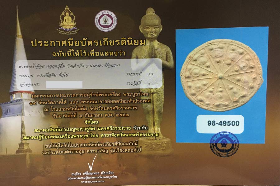 พระงบน้ำอ้อย หลวงปู่ยิ้ม วัดเจ้าเจ็ด จ.อยุธยา สภาพสวย ติดรางวัล