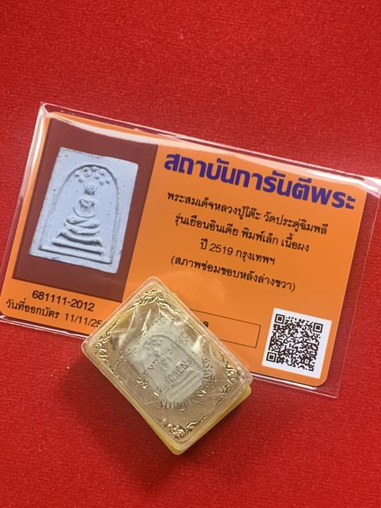 พระสมเด็จหลวงปู่โต๊ะ ปี 19 เนื้อเกสร รุ่น เยือนอินเดีย พิมพ์เล็ก พร้อมกล่องพระมีซ่อมนิดหน่อยครับออกบัตรรับรองมาให้แล้วสบายใจได้ครับ