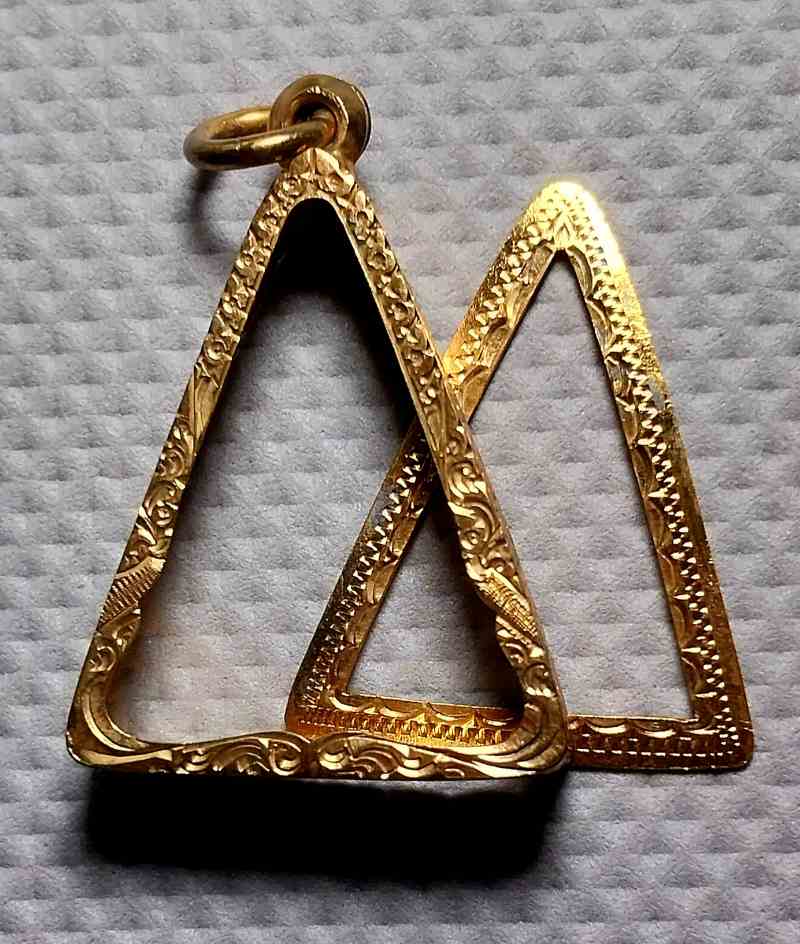 วัดใจ100//กรอบเงินชุบทอง มือสอง มือ2 ทรงสามเหลี่ยม งานห่วงเชื่อม