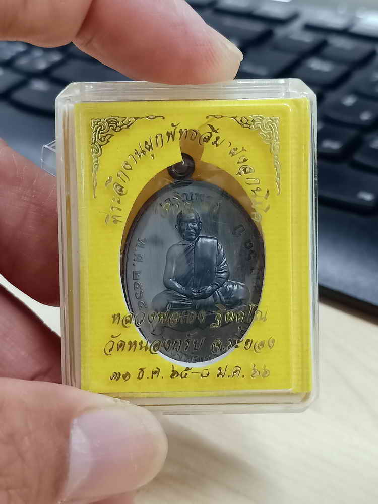 วัดใจ 150 เหรียญเจริญพร หลวงพ่อเถ่ง ฐิตคุโณ วัดหนองกรับ จ.ระยอง 2566 นวะแก่ทอง หมายเลข 59 กล่องเดิม
