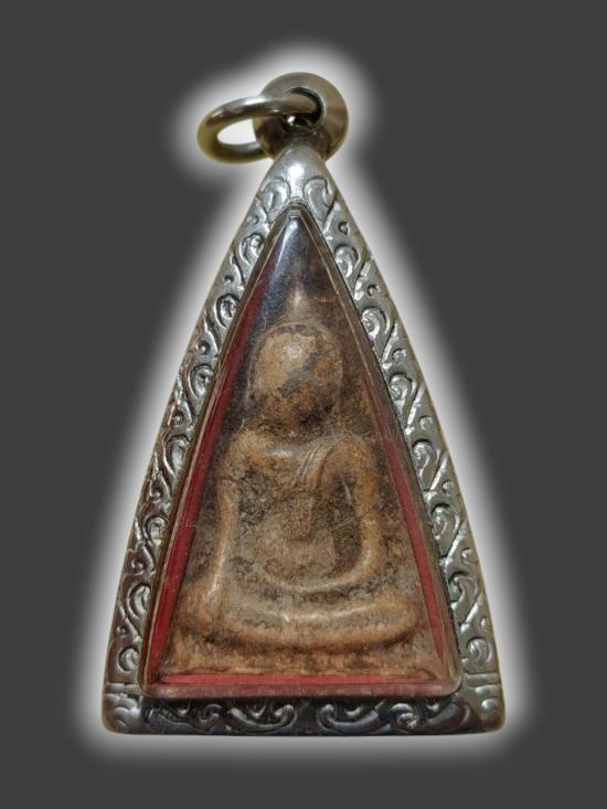 A3571.พระนางพญา เนื้อดิน ไม่ทราบที่ เลี่ยมกรอบสเเตนเลส ไม่ทราบที่ เคาะเดียวเเดง |