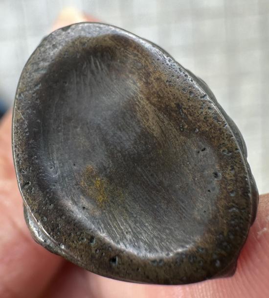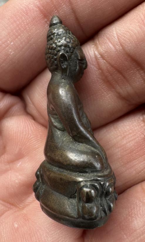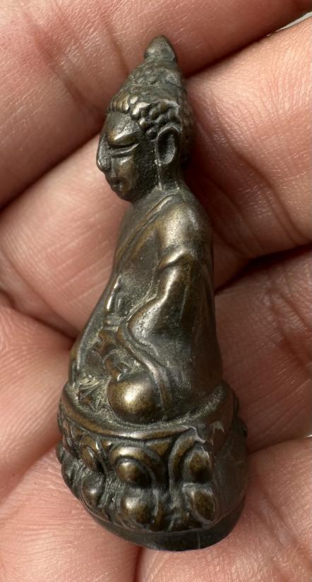พระกริ่งก้นถ้วย เนื้อออกสำริด เก่าไม่ทราบที่ เขย่าไม่มีเสียง