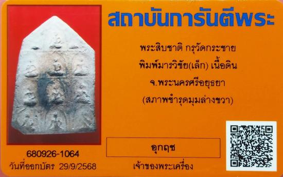 ชื่อพระเครื่อง พระสิบชาติ กรุวัดกระชาย พิมพ์มารวิชัย(เล็ก) เนื้อดิน จ.พระนครศรีอยุธยา พร้อมบัตรรับรองจากจีพระ