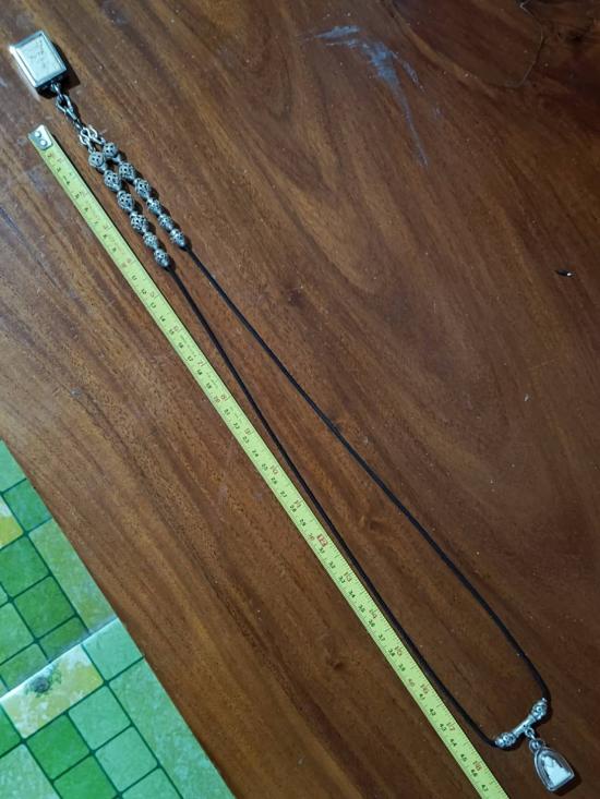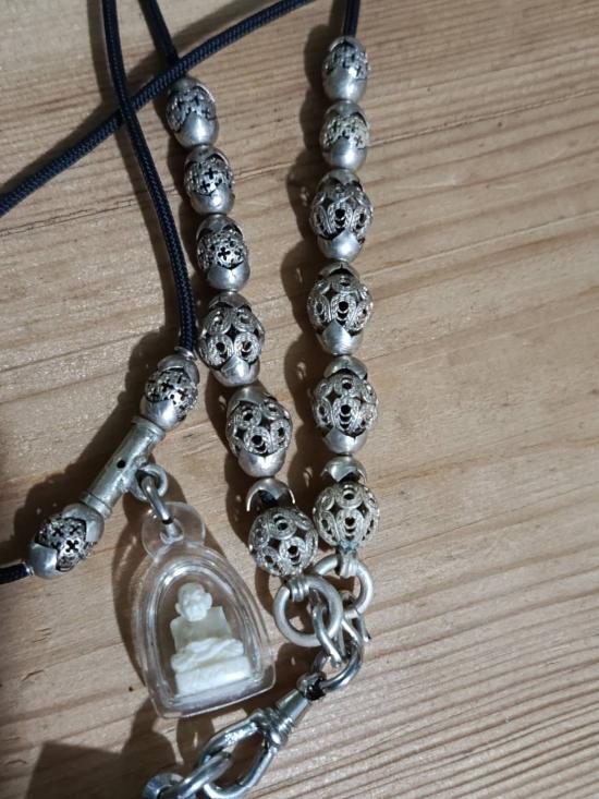 สร้อยเม็ดเงินแท้เก่า สั่งทำ ยาว 36 นิ้วสวมหัวได้ หนัก 23 กรัมกว่า สวยสมบูรณ์ แขวงพระด้านหลังได้