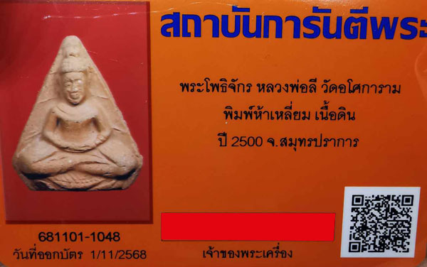 พระโพธิจักร หลวงพ่อลี วัดอโศการาม พิมพ์ห้าเหลี่ยม เนื้อดิน ปี2500 จ.สมุทรปราการ + บัตรG-pra สภาพเดิมค่ะ |