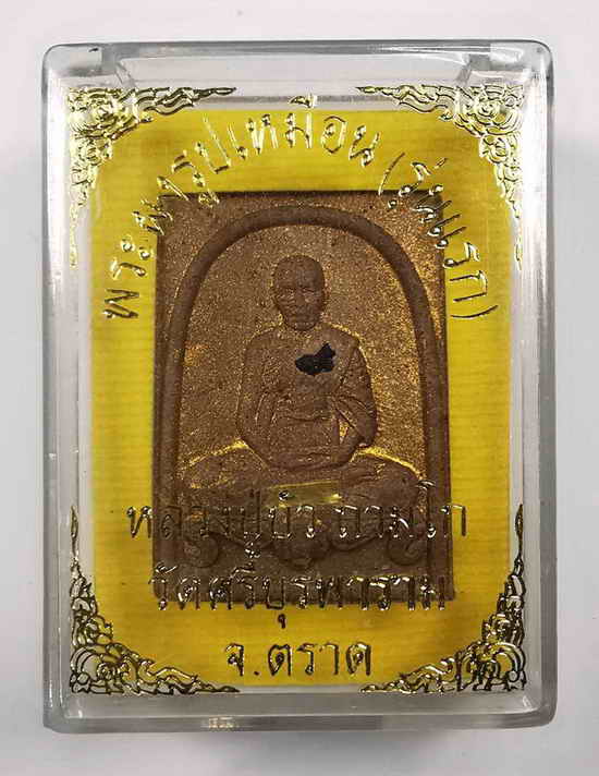 (เคาะเดียว หมายเลข 284 ) พระผงรูปเหมือน (รุ่นแรก) หลวงปู่บัว ถามโก ทาทอง ตะกรุดทองคำ ฝังพลอย วัดศรีบุรพาราม จังหวัดตราด 2560 พร้อมกล่องเดิมจากวัดครับ