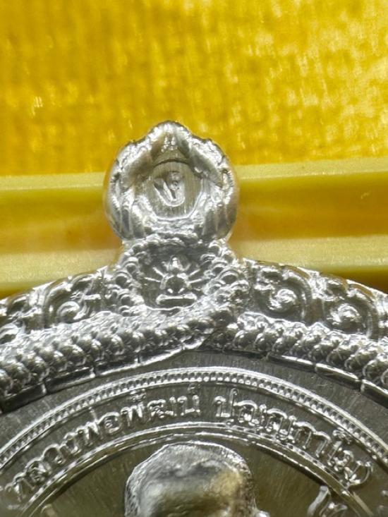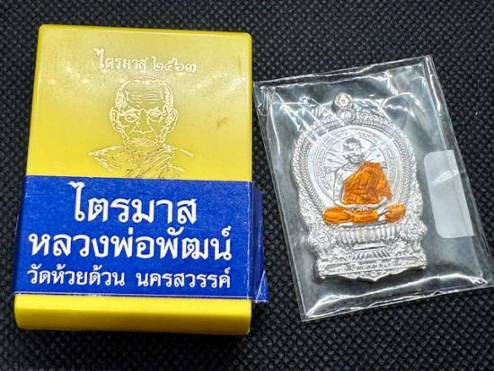 เหรียญไตรมาส 63 หลวงพ่อพัฒน์ วัดห้วยด้วน นครสวรรค์ (พิมพ์นั่งพาน โภคทรัพย์) เนื้อเงินลงยาจีวร ผิวกระจก จมูก100 ไม่ผ่านการใช้งาน หมายเลข 410 กล่องเดิมครบ |