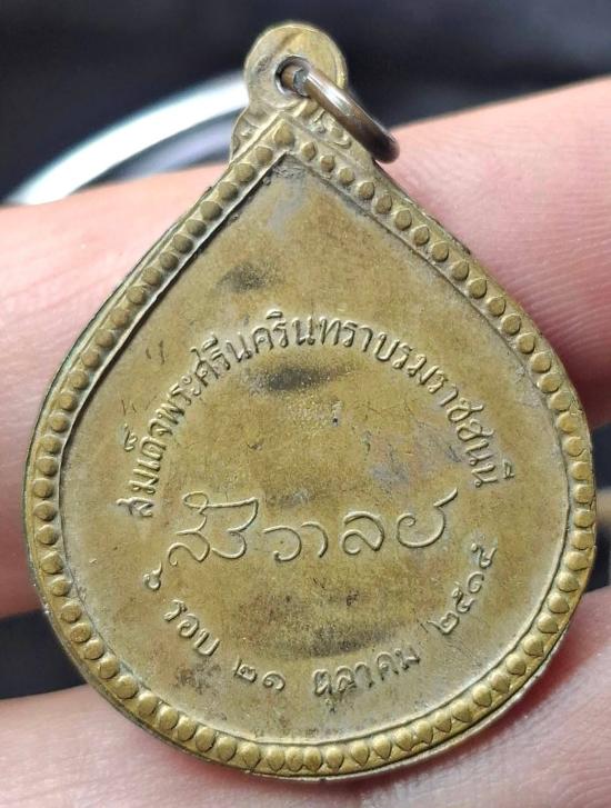 ด้านหลัง - เขียนว่า สมเด็จพระศรีนครินทราบรมราชชนนี ๖ รอบ ๒๑ ตุลาคม ๒๕๑๕ โดยที่ตรงกลางเหรียญ เขียนชื่อ สังวาลย์ เป็นลายเซ็น สมเด็จย่า