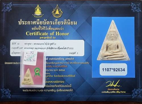 พระนางพญา หลวงพ่อกวย วัดโฆสิตาราม เนื้อผงน้ำมัน ปี2521 ติดรางวัลที่3