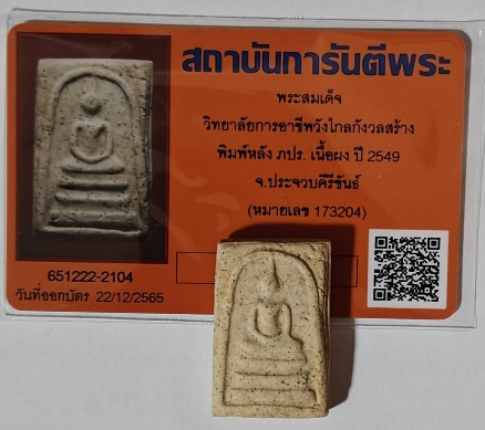 พระสมเด็จ วิทยาลัยการอาชีพวังไกลกังวลสร้าง พิมพ์หลัง ภปร. เนื้อผง ปี 2549 จ.ประจวบคีรีขันธ์ |