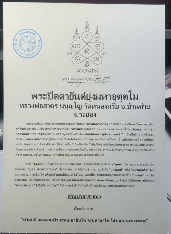 @@ รูปภาพหลวงพ่อสาคร + กระดาษยันต์พระปิดตา มหาอุตตโม หลวงพ่อสาคร มนูญโญ วัดหนองกรับ จ.ระยอง @@ |