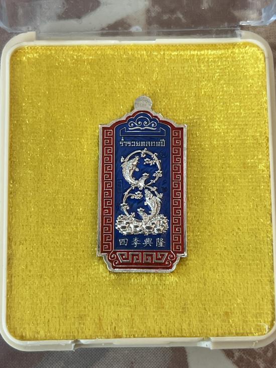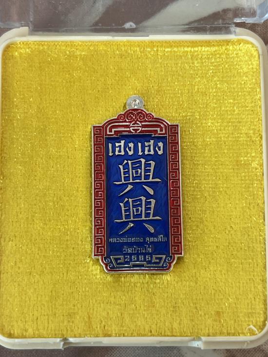 เฮง เฮง หลวงพ่อทอง สุทธสีโล ออกวัดบ้าน ไร่ ปี 2565 เนื้อ ชุบเงินลงยาน้ำเงินขอบแดง หมายเลข 96 สภาพสวย พร้อมกล่องเดิม เคาะเดียวแดง |