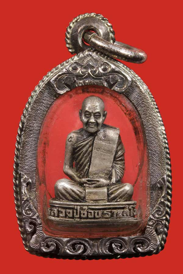 รูปหล่อหลวงปู่ชอบ ฐานสโม เนื้อเงิน เลึ่ยมเงิน