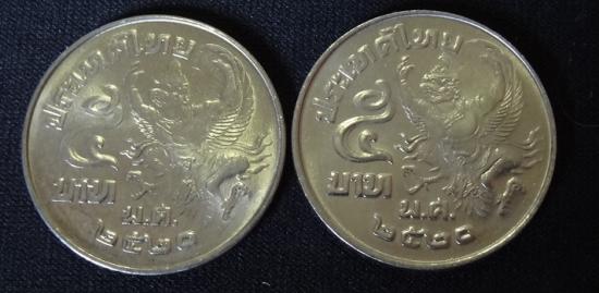 เหรียญ ในหลวงร.9 5 บาท ครุฑเฉียง ปี20 unc รวม2เหรียญ น้ำทองสวย วิ้งๆๆ |