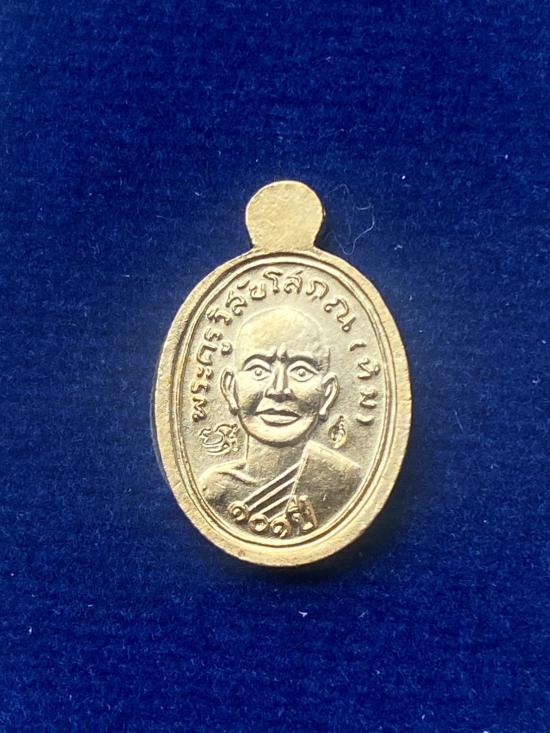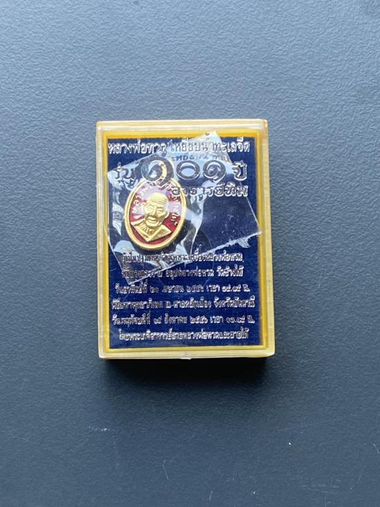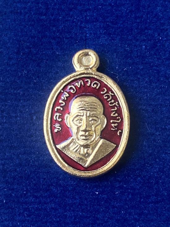 เม็ดแตงหลวงปู่ทวด หลังอาจารย์ทิม รุ่น101ปี เนื้อทองแดงนอกชุบทองลงยาแดง |